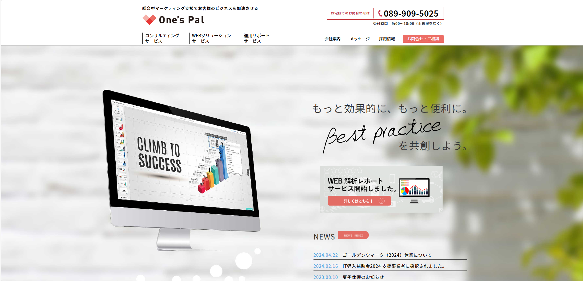 松山市でITコンサルティングなど様々な事業展開を行っている株式会社One’s Palは、クライアントのブランディングの強化に努めている企業です。SEO対策だけでなくインターネット広告も活用しながら、クライアントがターゲットとしている顧客に対して効果的なアプローチを提案しています。