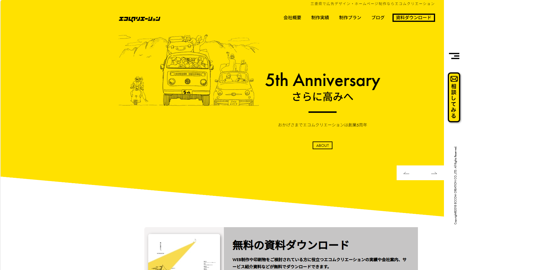 株式会社エコムクリエーションは、三重県三重郡に拠点を持つ広告デザイン・ホームページ制作会社です。データに基づいたデザイン戦略を提案、デザインを通じて顧客を成功に導いています。