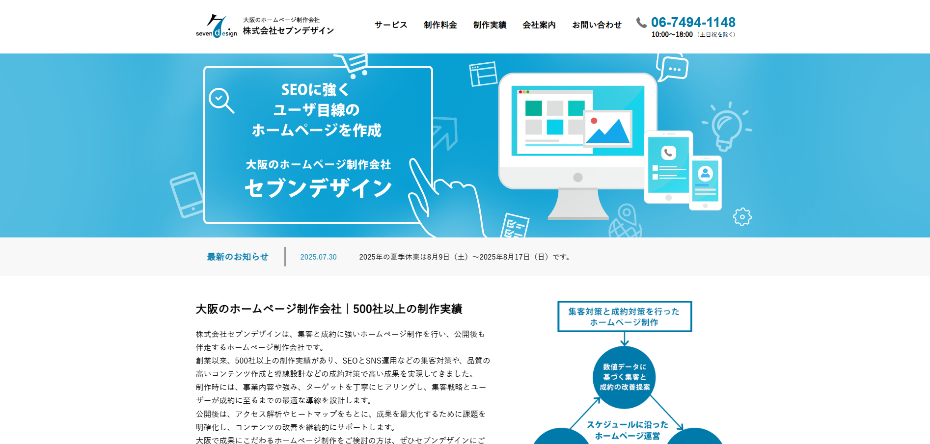 デザイナー、ライター、ITエンジニアが連携し、ホームページ制作に関わる全てのプロセスをワンストップで提供。大阪の地域特性を踏まえたウェブ戦略を得意としています。