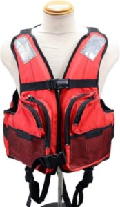 こちらは手頃な価格のライフジャケット。磯釣りやテトラポットなどでの釣り用に、様子見として初めて購入するのにちょうどよい製品です。「桜マーク」付きの製品ではありませんが、メーカーによれば同等の浮力があるとのこと。股を通すベルトも全サイズ付いているので、しっかり装着できます。