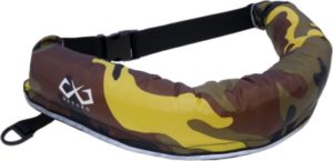 こちらはベルトタイプ・膨張式のライフジャケットです。自動膨張式ですが、万が一の場合に備えて手動でも膨張します。ウエストは80~145cmに対応。これは大柄な人向けということではなく、衣服を身に付けた一番外側に装着するためです。とは言えサイズ大きめの方でも充分装着できる大きさ。