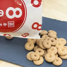 「8の字」は世代を超えて愛されるシンプルな焼き菓子です。お菓子としては珍しい名前の通り、数字の「8」の形をしています。ちょっとそばぼうろにも似た、甘さ控えめの素朴なお味。初めて食べても懐かしい気持ちになると評判です。シンプルがゆえにいくつも・何度も食べたくなって、ついつい手を出してしまいます。