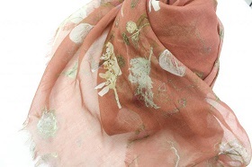 「光透けるストール」は掛川市にある福田織物のストールです。掛川市のある遠州(静岡県西部)は日本三大綿織物産地の1つ。こちらの商品は、希少で上質な綿を極細の糸にして、高度な技術を持つ職人さんが織りました。綿なのですが、シルクのような艶とカシミアのような柔らかさ、巻いている感覚がないほどの軽さが特徴です。