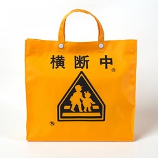 「横断バッグ」は、静岡県内の小学生が通学時のセカンドバッグとして使うバッグです。横断旗がモチーフになっています。静岡だけのスタイルなのですが静岡の皆さんは全国共通だと思っているので、そうではないと知ると衝撃を受けるんだそうです。