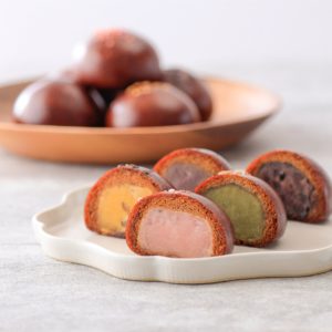 近年奈良の手土産として人気を集めているのが、GRAN CHAの「口・福・餅」。奈良県の宇陀地域の方で生産がスタートした、日本茶のルーツとも言われる大和茶を使用。大和茶の美味しさをより深く味わえるようにと、3種類の大和茶を使用し、抹茶クリーム、塩餡、抹茶餅、抹茶パウダーの4重構造の大福が誕生しました。