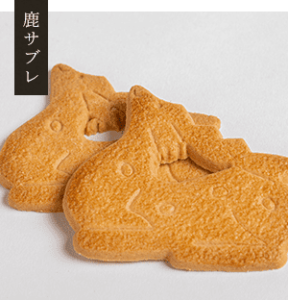 奈良の鹿をイメージした、「横田福栄堂」で人気のサブレ。サクサクとした優しい食感とシンプルな味わいは、どこか懐かしさを感じられる一品です。立派なツノは上を向いていて躍動感のある形が印象的。