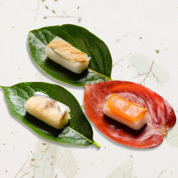 海の恵み(魚)、山の恵み(柿)、地の恵み(米)。このすべてが一体となったお寿司は、なんとも言えない味わい。見た目の美しさだけでなく、新鮮な魚と絶妙なすし酢がマッチして濃厚な旨味が感じられ、次々食べたくなる味です。