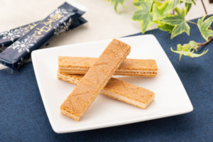 歯ごたえのあるウェハースに、甘さ控えめの高級ホワイトクリームを2層にたっぷりとサンドしてほどよい甘さに仕上げたお菓子。蔵王のお土産と言えば「樹氷ロマン」と真っ先に名前が挙がるほど大人気の商品です。