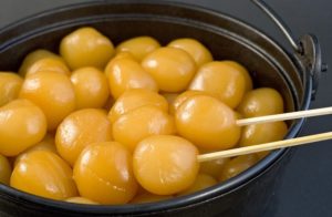 山形の祭りなどの行事や観光地でよく見かける、山形名物「玉こんにゃく」。丹野の玉こんにゃくを煮る秘伝の醤油は、本家である丹野醤油店との開発で作り上げた玉こんにゃく専用のもの。