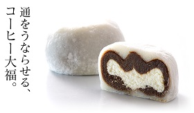 「生クリーム大福」は、餅・あん・生クリームと3層になっている大福です。伊勢崎に本店のある「妙ちくりん」の大人気商品。味はなんと15種類もあり、プレーンな「おぐら大福」のほか人気のコーヒー、ラムレーズン・黒蜜きなこなど和洋取り揃えたラインアップはどれも目移りしてしまいます。餅はもち粉でなくもち米からついたお餅。あんの小豆は北海道産。ほどよく濃厚な生クリームは生乳からていねいに作っています。