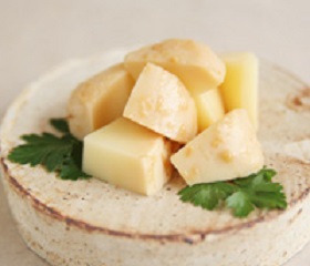 「たむらや」は、群馬を代表する味噌漬けの名店。お店には実にさまざまな種類のみそ漬けが並んでいて、毎回どれにしようか迷ってしまいます。そんなたむらやの人気商品が「モッツァレラチーズのみそ漬」。フレッシュなモッツァレラチーズを特製みそに漬け込んだ商品です。JAL国際線ビジネスクラスの機内食にも採用されました。水気が抜けたしっかり目の食感。味噌味はきつくなく食べやすいです。塊を漬けてあるので、好きな大きさ・厚さにカットして食べられます。