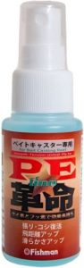 こちらはラインの定番のメーカー・バリバスのラインコーティング剤。PEライン用です。スプレーするとラインが長持ちするほかスムーズに滑るように。その結果、ルアーがスムーズに飛び、バックラッシュが減り、飛距離も伸びます。