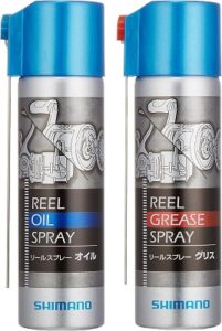 こちらはシマノの純正リール用スプレー。オイルとグリスのセットです。オイルもグリスもパーツのすき間によく馴染み、回転もスムーズに。ヌルヌル回るようになります。