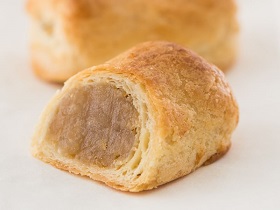 「ほっしぃ~も」は、全国総生産の約9割を茨城産が占めるという干し芋をパイ生地で焼き上げたお菓子です。さつまいも餡のパイは時々見かけますが、干し芋のねっとりとした食感を残したパイは珍しいです。さくさくとしたパイ生地、しっとりとして優しい甘さの餡はどんな世代も気に入るお味です。