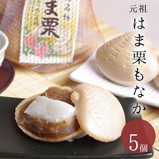 「はま栗」は、鹿島灘で採れる名物のはまぐりをイメージした形の栗最中です。餡は栗渋皮煮をたっぷり使った栗の風味豊かなもの。はまぐりの身をイメージしたやわらかな求肥を合わせ、はまぐり型の皮で包みました。個包装の最中がネットに入っているパッケージも、潮干狩りを連想させる粋な演出です。