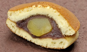 土浦に本店のあるどら焼き専門店「志ち乃」で、一番人気なのがこの「栗どら」です。茨城県は日本一の栗の産地。栗を使ったお菓子が昔から親しまれてきました。この栗どらには、大粒の栗の甘露煮がまるまる1つ挟みこまれています。砕いた栗ではなく大粒のままなので、栗の香りや風味が際立ちます。ふんわりした皮・甘さ控えめのあんが栗の引き立て役となり、どら焼きながら「栗を食べている」という満足感が得られる逸品です。