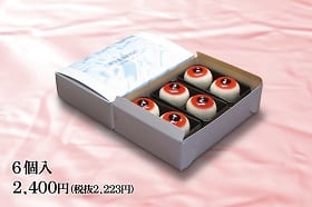 白目部分はこしあんに餅米の粉を混ぜた「ねりきり」、黒と赤の部分はようかんでできています。さらに中には栗入りのこしあんが包んであります。店頭ではバラ売りもあり、SNSなどでも評判になっています。