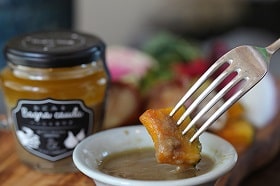 「かにみそバーニャカウダ」は、地元の境港産紅ずわいがにみそ・白バラブランドでもおなじみの大山乳業の純生クリーム・青森県産にんにくを使用したバーニャカウダです。かに味噌の風味がしっかりと感じられてコクがあります。定番の温野菜のディップとして、パスタのソースとして、あるいはパンにも合うのでバゲットにつけてカリカリに焼くのもおすすめです。リピーターも多い商品です。