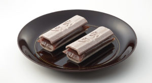 小麦粉をつなぎに使用した羊羹「でっち羊羹」。十勝産小豆のこし餡と、砂糖、小麦粉を練り合わせ、上質の竹皮で手包みしたのち、じっくりと蒸し上げた一品で、どこか懐かしく素朴な味わいが特徴です。