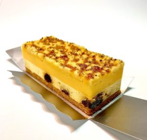 数々のメディアで紹介されたこともある、濃厚なベイクドチーズケーキ。そぼろ状のクッキーの下には、バターとカスタードクリームの層、クリームチーズ主体の層(ラムレーズン入り)、そして一番下はサブレ生地の4層仕立てのケーキです。