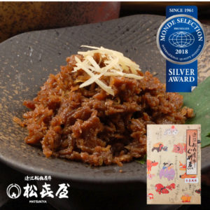 お肉本来の味を楽しめるような味付けにこだわり、江牛のモモ肉を丁寧に時間をかけてじっくり煮込み、柔らかな食感のしぐれ煮に仕上げています。生姜味と山椒味の2種の風味があり、どちらもご飯のお供に、お酒の肴にピッタリです。