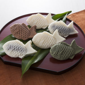 小倉、カスタード、チョコレート、チーズ、よもぎ、チョコフレークの6種類の味がセットになっているので、モチモチ食感とともにいろんな味の鯛焼きを楽しめます。