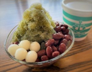 沖縄では一般的に、「ぜんざい」とはかき氷を山盛りにしたもののことを指します。氷が溶けても味が薄くならず最後まで美味しく食べられるよう、豆の煮汁を利用したダシ入りの氷を自社生産するなど、富士家さんこだわりの沖縄スイーツです。