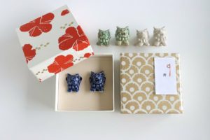 こうして置き物として作られるシーサーは今では種類も豊富。その中でもこのシーサーの箸置きは、普段の食卓を彩り和ませてくれるアイテムになるはずです。綺麗な小箱に入っているのでギフトにピッタリです。贈る相手の開運を祈って、ぜひ沖縄らしいアイテムを贈ってみてはいかがでしょうか。