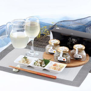 安心の国産ふぐを使用。ふぐさし風に切ったふぐの切り身をお洒落な瓶に詰め、白ワインに合うように味付けした商品です。白ワインに合う瓶のふぐさしは、今までにないフグの楽しみ方ができる新感覚の商品で、日本酒や焼酎のお供にぴったりなのだとか。