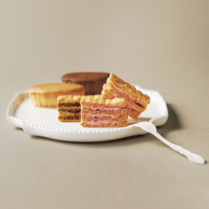 スフレは「ふくれる」の意味を持つフランス銘菓で、その名の通り柔らかでふわっとした食感が楽しめます。ミルフイユはチョコとフランボワーズの2種、スフレは芳醇フロマージュ・濃厚ショコラの2種が入っており、いろんな味・食感を楽しめます。コーヒーや紅茶によく合い、ティータイムをより楽しいものにしてくれます。