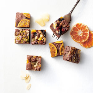 濃厚なチョコレートの生地に、香ばしいナッツや甘酸っぱいフルーツをトッピングしており、その華やかな見た目も楽しめます。ピスタチオとアーモンド、ごろっとしたパイナップルやネーブル、たっぷりのドライフルーツとナッツなど、チョコとフルーツの抜群の相性を、ぜひ自分の舌で確かめてみて下さい。