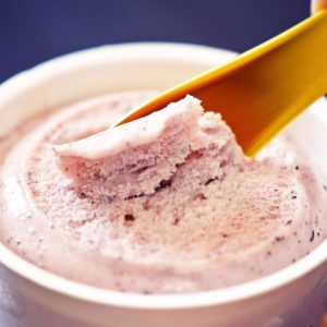 島根県吉賀町の山吹グリーンファームで大切に育てられているジャージー牛の濃厚なミルクによって、コクをプラス。綺麗な紫色と酒粕の香りが特徴で、濃厚ながらもすっきりした味わいは、甘いものが苦手な方でもおいしく食べられるはず。ほのかな酒粕の風味も楽しめる大人なアイスです。