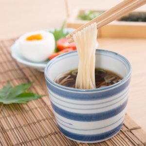 「半田そうめん」は徳島県つるぎ町半田地区の特産品。一般的なそうめんよりも太く、ひやむぎほどあるのが大きな特徴です。つるつるとした喉越し、もちもちとしたコシ。徳島では夏の定番となっているそうめんです。