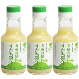 上でご紹介したゆこう果汁に引き続き、同じく「阪東食品」の商品「有機すだち果汁」です。徳島県はすだちの生産量がダントツで日本一、およそ98%のシェアを誇ります。こちらは坂東食品の自社農園で有機栽培されたすだちの果汁です。すだちならではの、すがすがしく上品な香りと爽やかな酸味が活きています。
