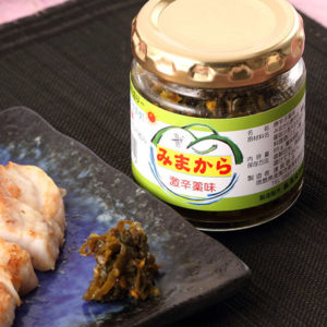 どんな商品かというと、徳島特産の「みまから唐辛子」を使った激辛の薬味です。みまから唐辛子は、「ハバネロ級の辛さと、メロン並みの糖度」という相反する特徴をあわせ持つ珍しい唐辛子。みまから唐辛子を輪切りにして、胡麻油や醤油などで調味したのがこの「みまから」です。激辛ながら辛さだけではない豊かな風味。辛いものがお好きな方もそうではない方も、ぜひ販売開始をお待ちください。