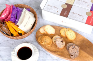 また、焼き上げ、生地が膨らむ際にできる表面のぼこぼことした大小の「美味しいポケット」こそが、奥深い味わいの秘密なのだとか。そのポケットにそれぞれのフレーバーが染み込み、個性的な味とサクサクした食感を楽しめます。シベールの定番ラスク、プレミアムバター、ブルーベリー、ショコラ、メープル+くるみ、ガーリックの5種類のラスクが入った詰合せはなんとも贅沢。デザインもシンプルでナチュラルな風合いの中に可愛らしさもあり、ちょっとした贈り物にもぴったりです。