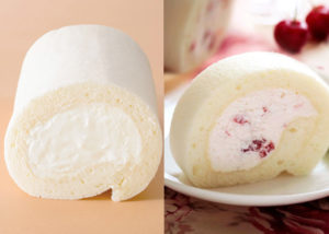 また、この商品は山形県産さくらんぼを贅沢に加えた「さくらんぼ」バージョンもセットになっています。コロコロと果肉が入っているので果実感たっぷりで、通常のほわいとぱりろーるにはない甘酸っぱく爽やかな味わいが特徴。見た目でも幸せな気分になれる2種のロールケーキが専用箱に入っており、贈答用にも最適です。