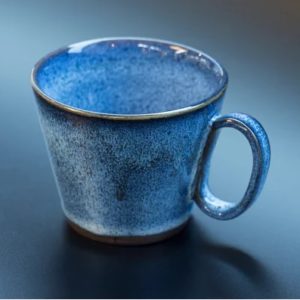 天保12年開窯以来、山形の新庄戸沢藩御用窯として続く「新庄東山焼」の職人が、機能的で日常使いできるシンプルな形状に仕上げたマグカップです。羽の雪のかげりの色と言われる澄んだ青みのある色合いがなんともおしゃれで、2018年度グッドデザイン賞を受賞した経験もあり人気の商品です。