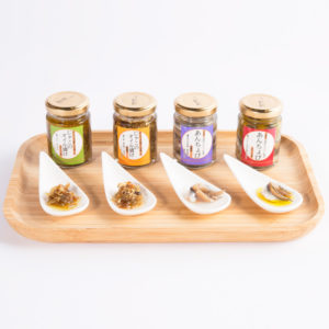 原材料にこだわり、丁寧に仕上げた人気の4種類「手造りあんちょび菜種油」「手造りあんちょびオリーブ油」「じゃこのオイル漬け菜種油」「じゃこのオイル漬けオリーブ油」をセットにした贅沢な商品。