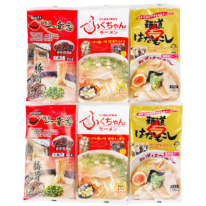・内容量…【ふくちゃん】めん90g×2、スープ60ml×2、にんにく3g×2、【一幸舎】めん90g×2、スープ46ml×2、辛子高菜16g×2、【はなもこし】めん90g×2、スープ60ml×2