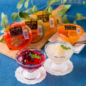 ・内容量…甘夏ゼリー155g、タンカンゼリー155g、メロンゼリー155g、ブルーベリーゼリー155g、新高梨ゼリー155g、トマトゼリー150g 各2