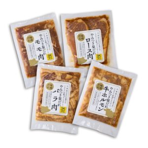 こちらのバラエティーセットは「やみつき梨だれモモ肉」、「やみつき梨だれロース肉」、「やみつき梨だれバラ肉」、「やみつき梨だれ牛ホルモン」がセットになっており、肉質や脂の違い、食感の違いなど4種の味わいを楽しめます。そのまま焼いてもよし、野菜と炒めてもよし、お好きなアレンジでおいしく食べられます。冷凍保存できる便利な使いきりサイズなうえ、味付けは不要。手軽に調理できるのも人気の理由です。