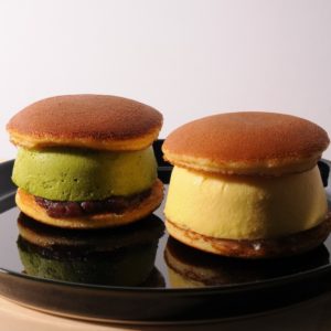 抹茶を混ぜ合わせた九州産の生クリームと自家製粒あんをサンドした「抹茶味」と、マンゴーと九州産の生クリームを混ぜ合わせたクリームと自家製白粒あんをサンドした「マンゴー味」の2種類が用意されています。和・洋のいいとこどりをした新しい生どらは、宮崎スイーツの新定番です。