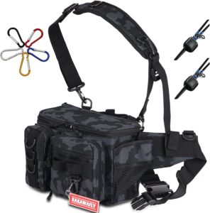 HAKAWAFLY フィッシングバッグ5WAY ロッドベルト2点とカラビナ5点付き 釣りバッグ 防水 タックルバッグ 多機能 大容量 ランガンバッグ (ブラック、カーキ迷彩、ネイビー迷彩)