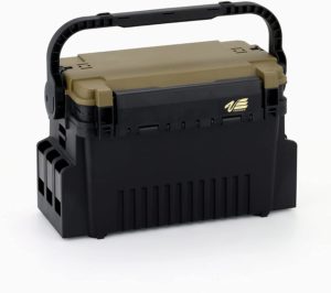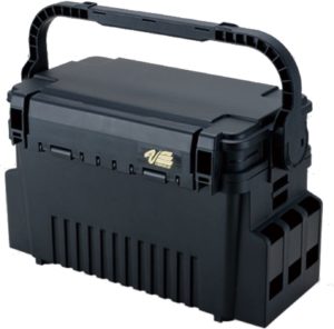 また、蓋を全開にすると蓋の裏が作業台に早変わり!さらに上段は小物などを収納できる薄型のスペースがあり、下段は大きなスペースで様々な釣具を収納可能。仕切りが2つ付いているので最大で3つの部屋に分けることができ、使い勝手も抜群です。ランガンスタイルやバスフィッシング、管釣り、ボートフィッシングに最適です。