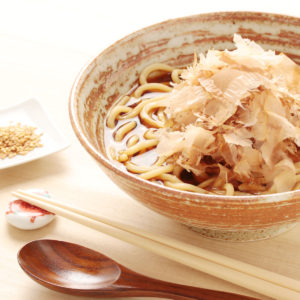 こちらの讃岐うどんは宗田節を細かい粉状にして練り込んでおり、口の中で豊かな風味が広がります。宗田節のコクとつるんとした麺ののどごしは他にはない味わいですよ。
