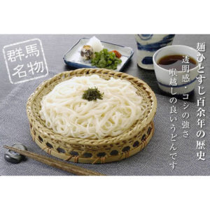 - 水沢うどん…群馬県渋川市伊香保町水沢付近の名物料理で、強いコシと透明感のある麺が特徴。冷たいざるうどんで提供されることが多く、つけ汁はお店によってさまざまです。また、小麦粉・塩・水沢の水だけを使用したものという基準が設けられています。