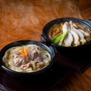 讃岐すき焼うどんのつゆは、煮干し・さばとむろあじの削り節・昆布からとった本格的な出汁が特徴。牛肉・玉ねぎを煮込んだ甘い煮汁も合わさり風味豊かです。また讃岐カレーうどんは、まろやかで品のある辛さを追求したつゆにトッピングの国産牛すじ肉が相性抜群。