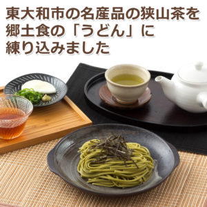 ひがしやまと茶うどんは東大和市の名産品である狭山茶をうどんに練り込んで作られており、口の中でほのかにお茶の風味が広がります。
