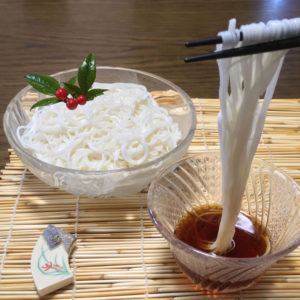 ふしめんはそうめん作りで竿にかかっていた部分で、一度に少量しかことができない貴重なもの。独特の食感やみずみずしさ、またほのかに感じる甘味をぜひ味わってみてくださいね。